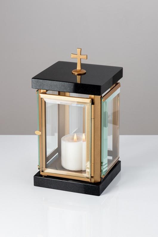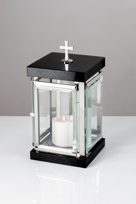 Lampion granitowy z elementami stali nierdzewnej stanowi eleganckie uzupełnienie każdego nagrobka. Wykorzystując nagrobkowe znicze elektryczne oszczędzamy na zakupie tradycyjnych wkładów. Lampion wykonany jest z niezwykle odpornego granitu szwedzkiego, stali nierdzewnej oraz fazowanego szkła. Wykończony pięknym płomieniem ze stali nierdzewnej.