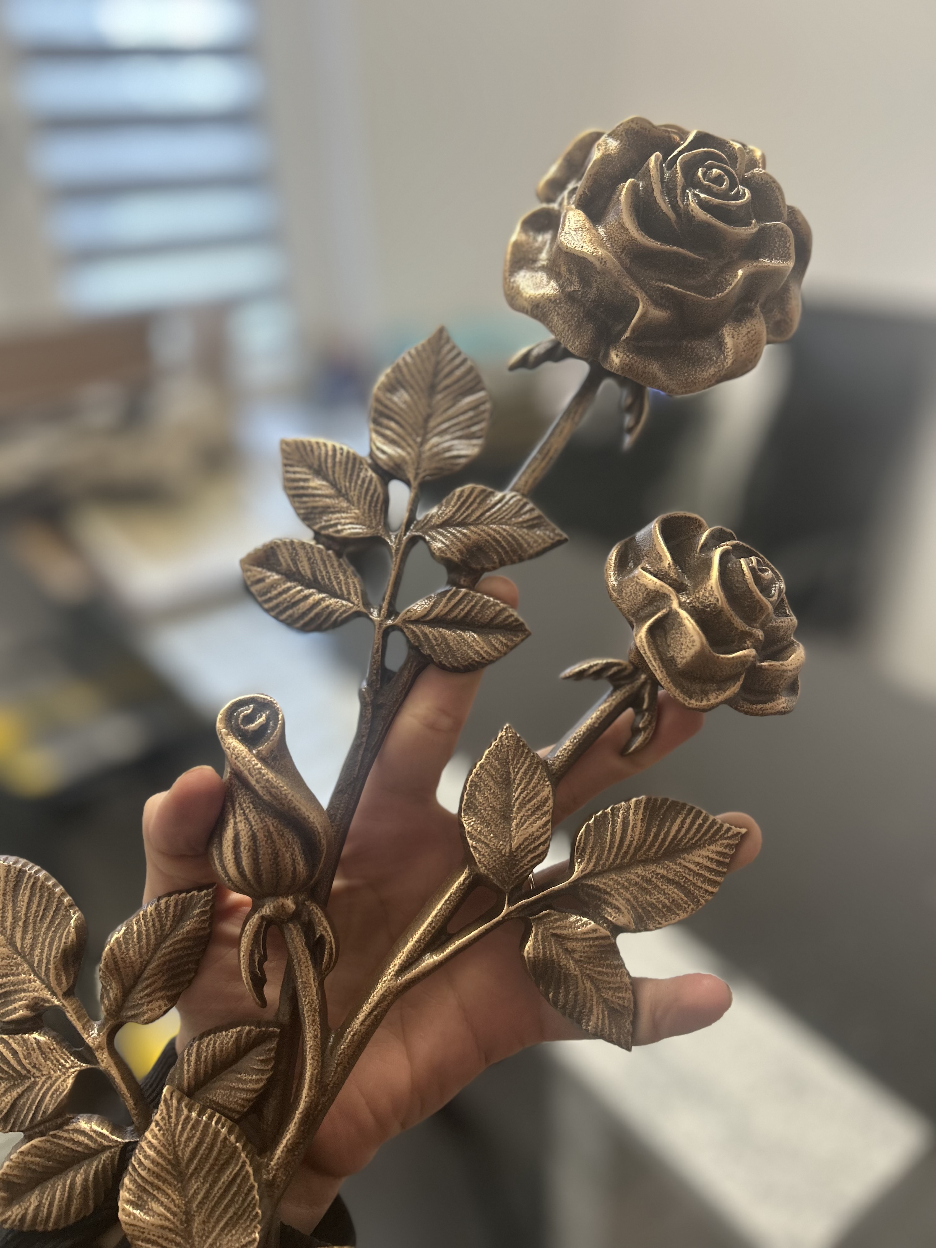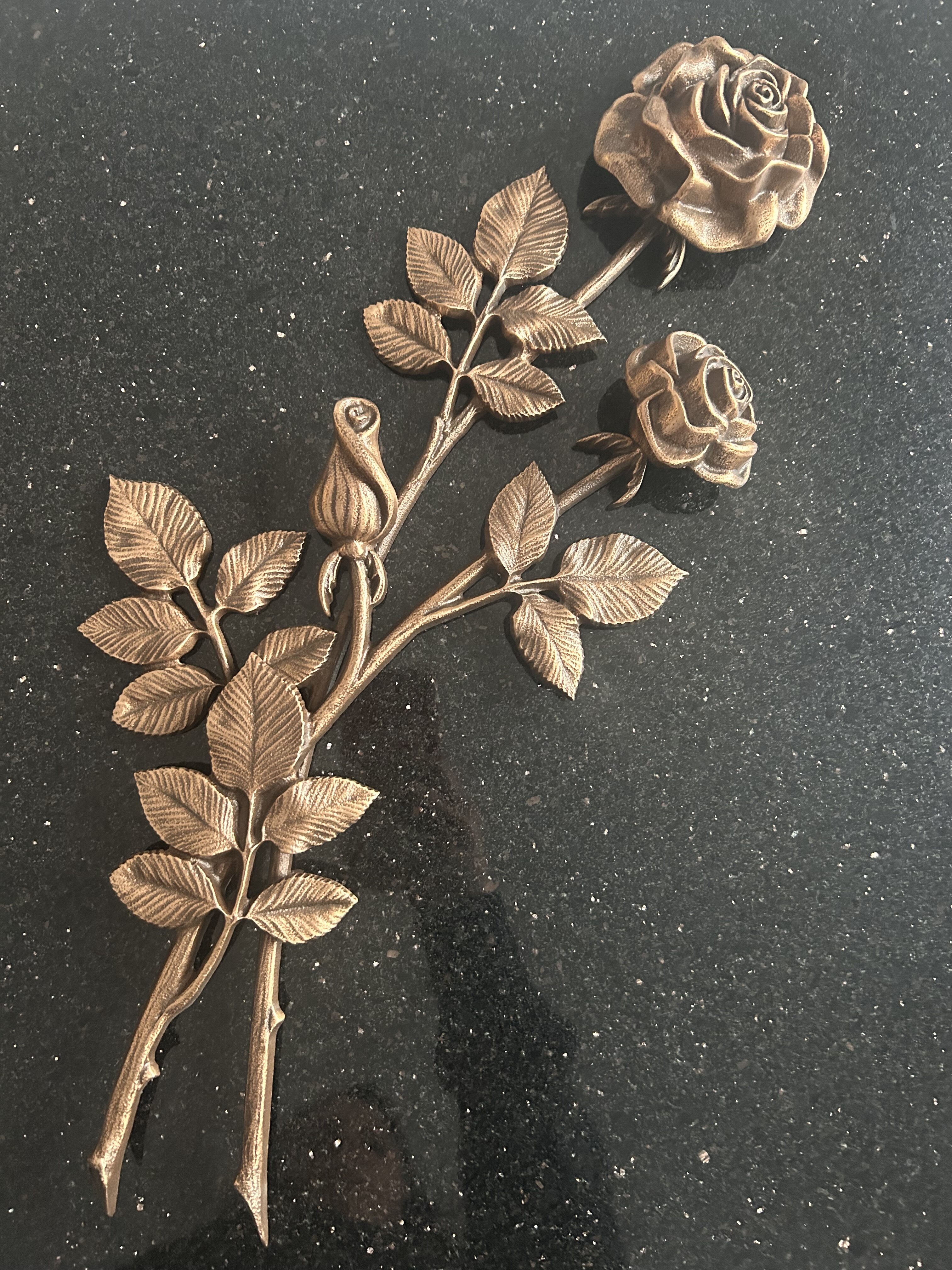Piękna róża wytwarzana w tradycyjnej niemieckiej manufakturze. Ręcznie patynowana. Bardzo ciężka i trwała. Wykonana z najlepszego stopu brązu, jest odporna na warunki atmosferyczne i upływający czas.