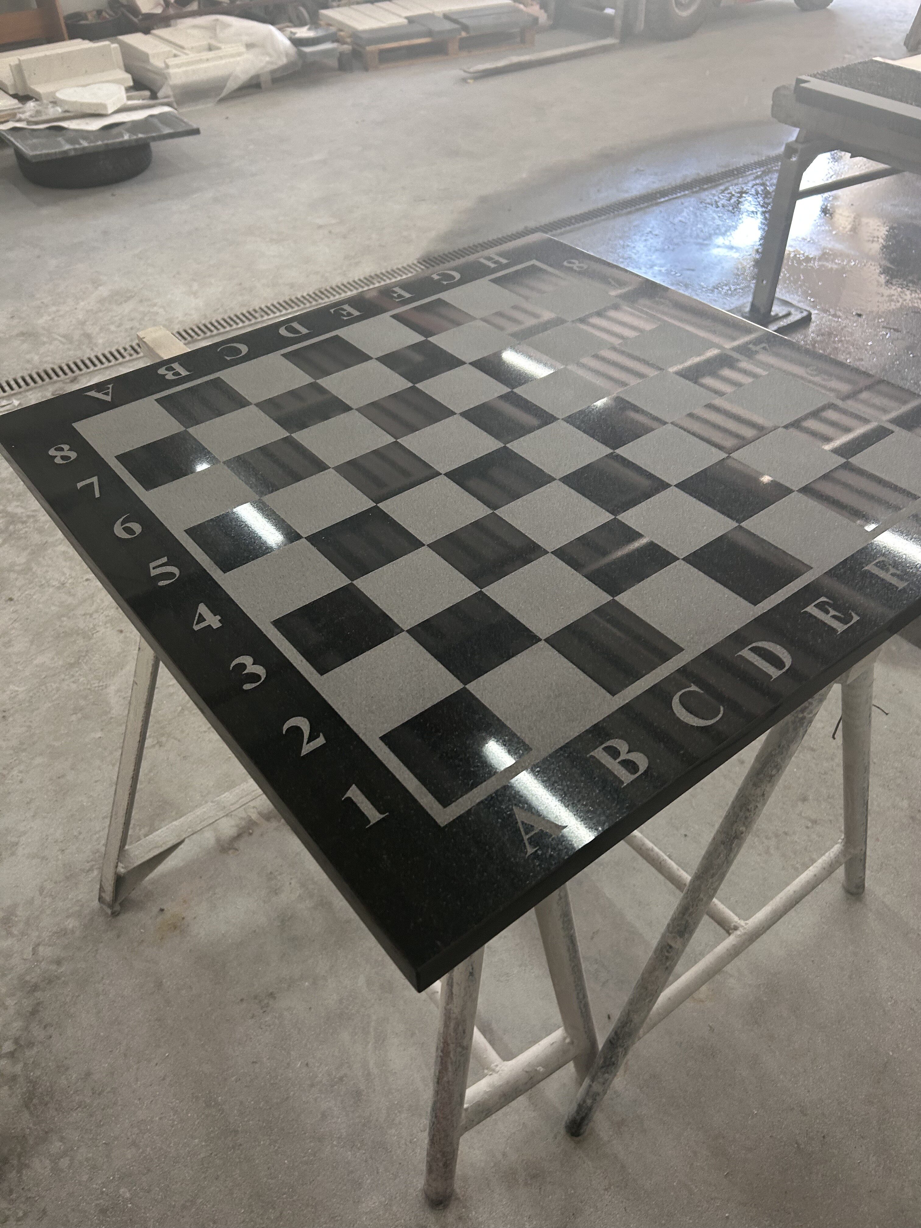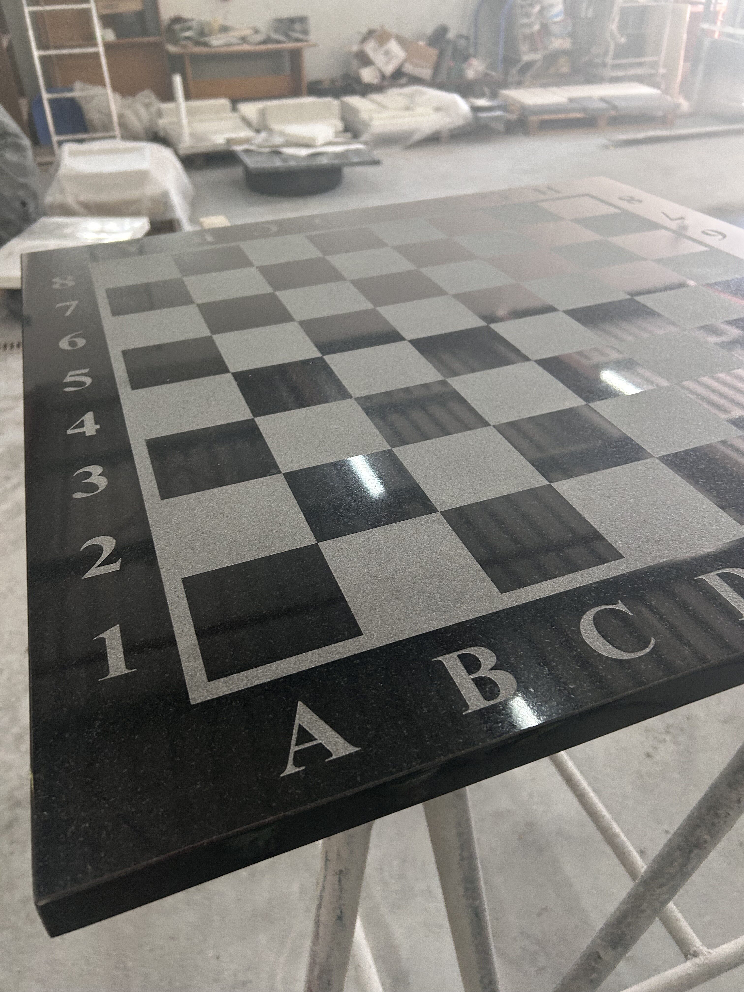 Piękna granitowa szachownica do gry w szachy. Piaskowane pola do gry. Idealny pomysł na prezent dla fanów gry w szachy. Odporna na działanie warunków atmosferycznych, może być wykorzystywana na zewnątrz.