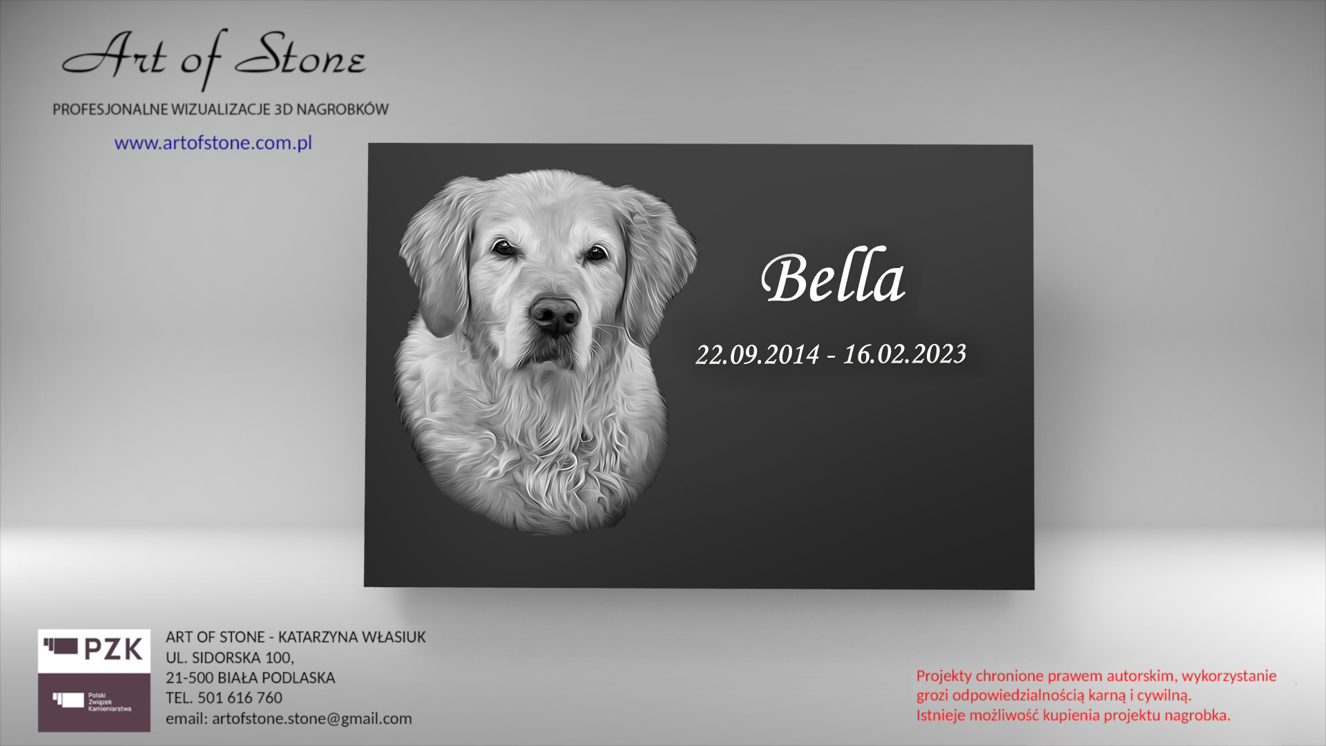 Nagrobek dla psa. Płytka z czarnego granitu 60x40 cm, w cenie napisy i grawer. Darmowa dostawa w całej Polsce.