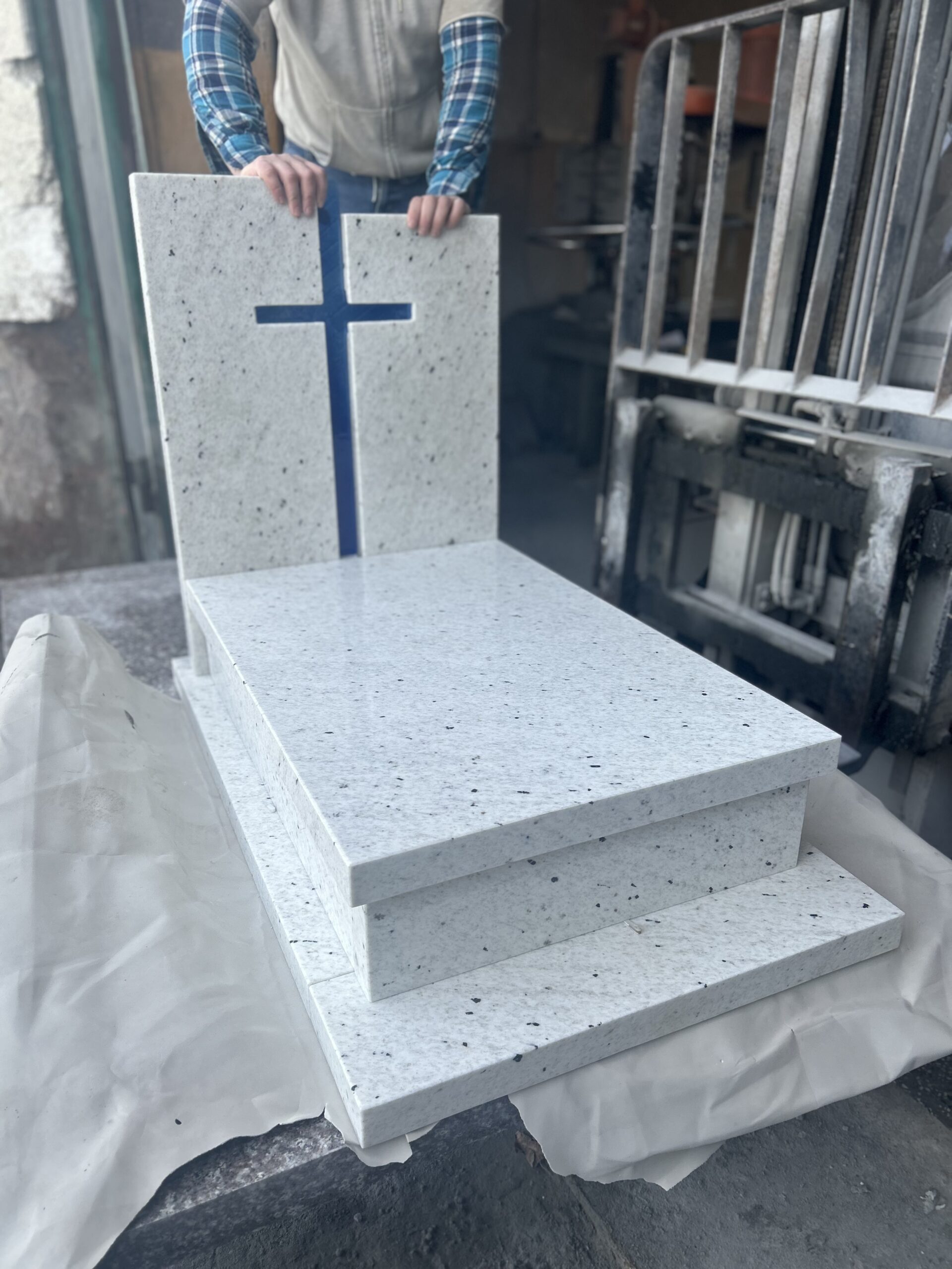 Nagrobek z pięknego białego granitu, wymiar u podstawy 110x65 cm