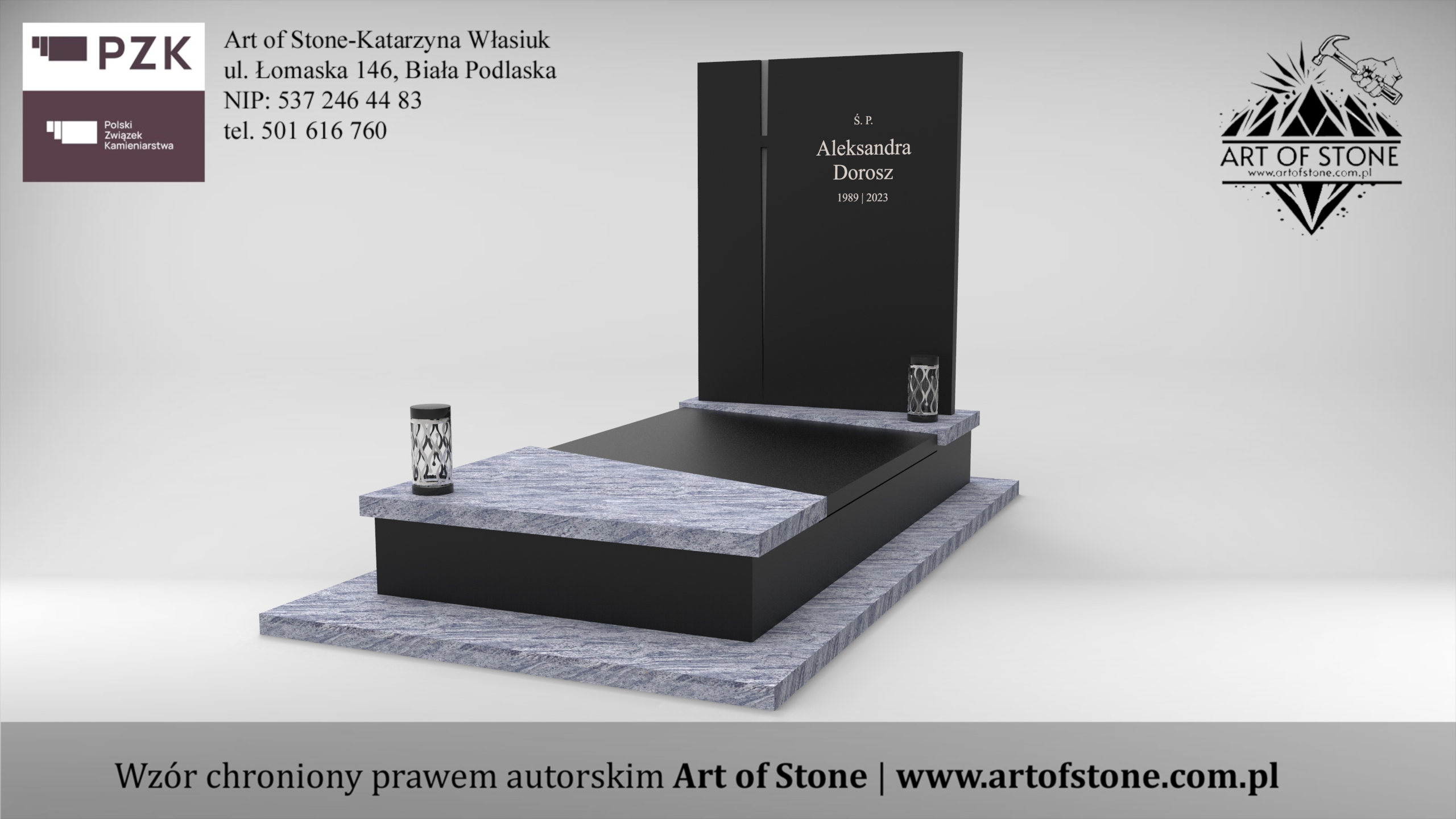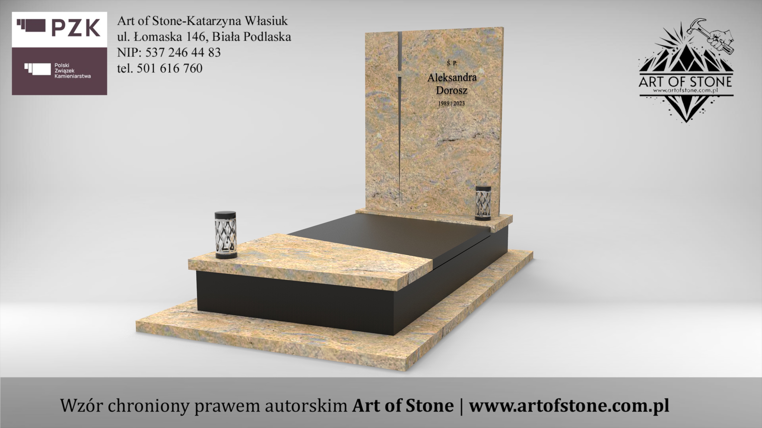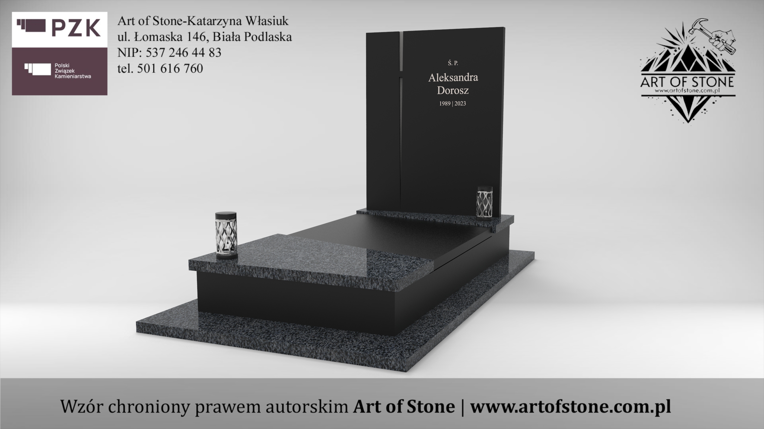 *Wzór chroniony prawem autorskim. Wykorzystanie grozi konsekwencjami prawnymi zarówno dla Zleceniodawcy, jak i Wykonawcy. Jeżeli chcesz zamówić taki nagrobek u lokalnego kamieniarza kup projekt z licencją na jednorazowe wykorzystanie.