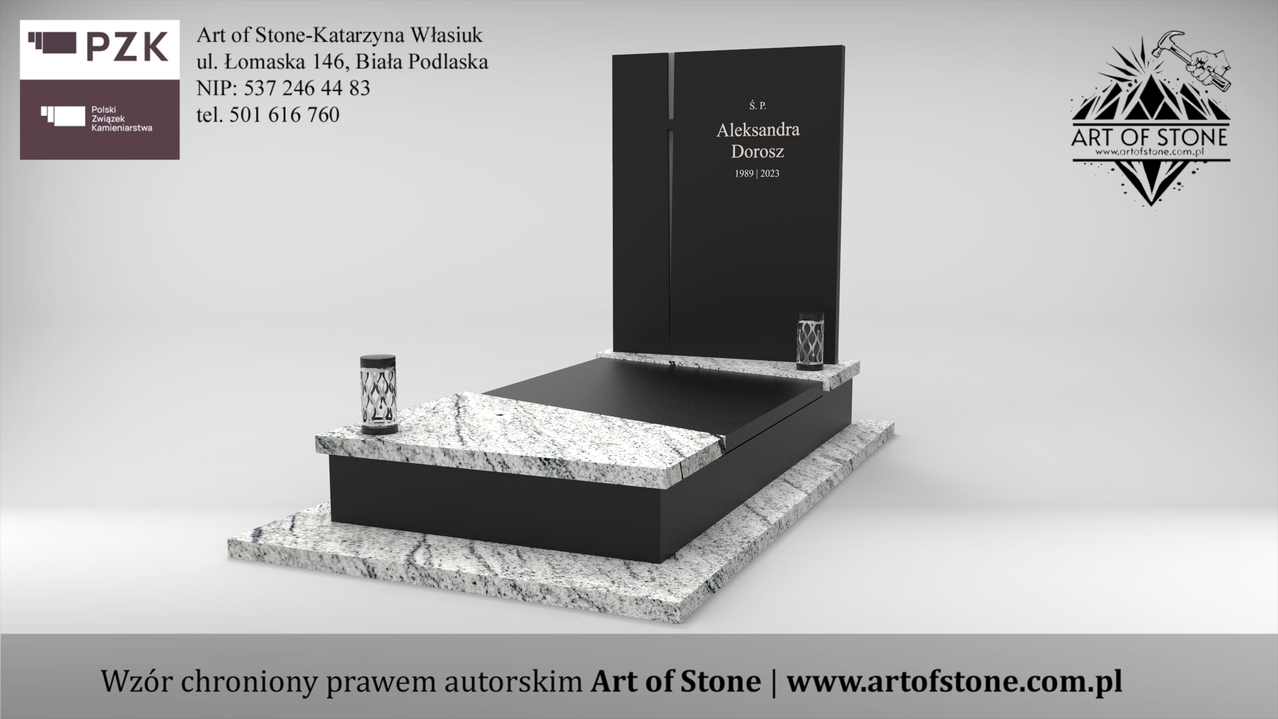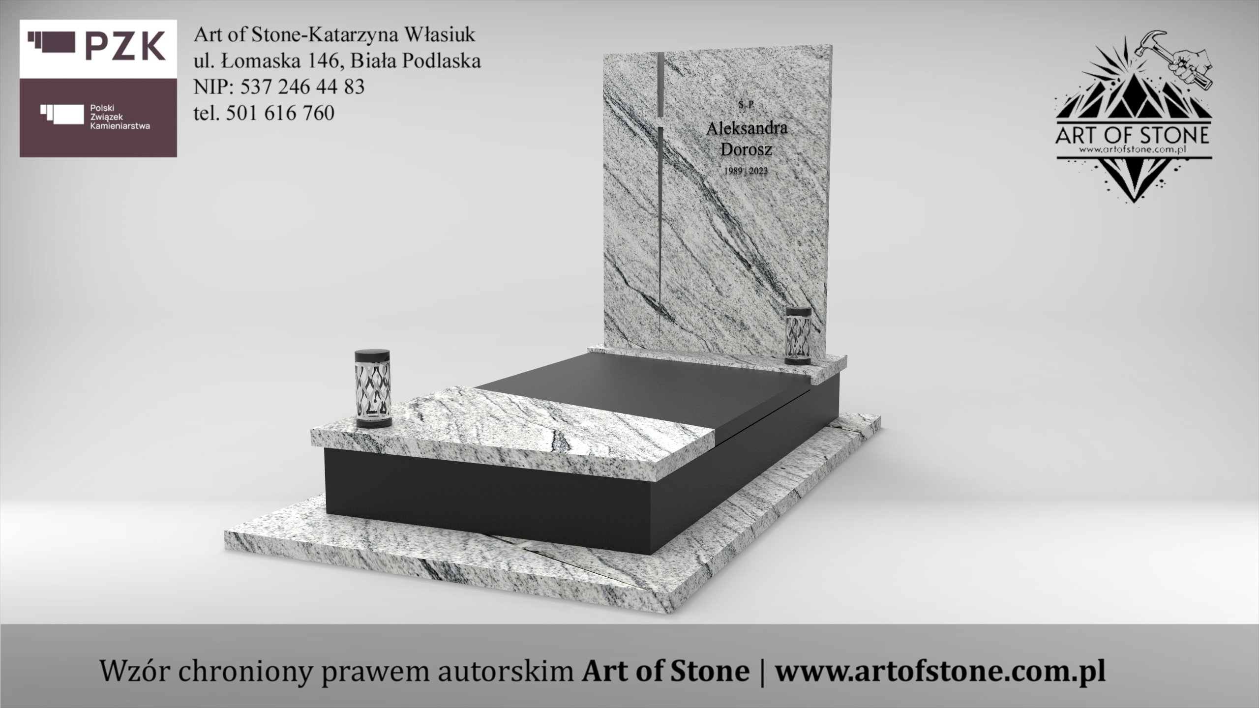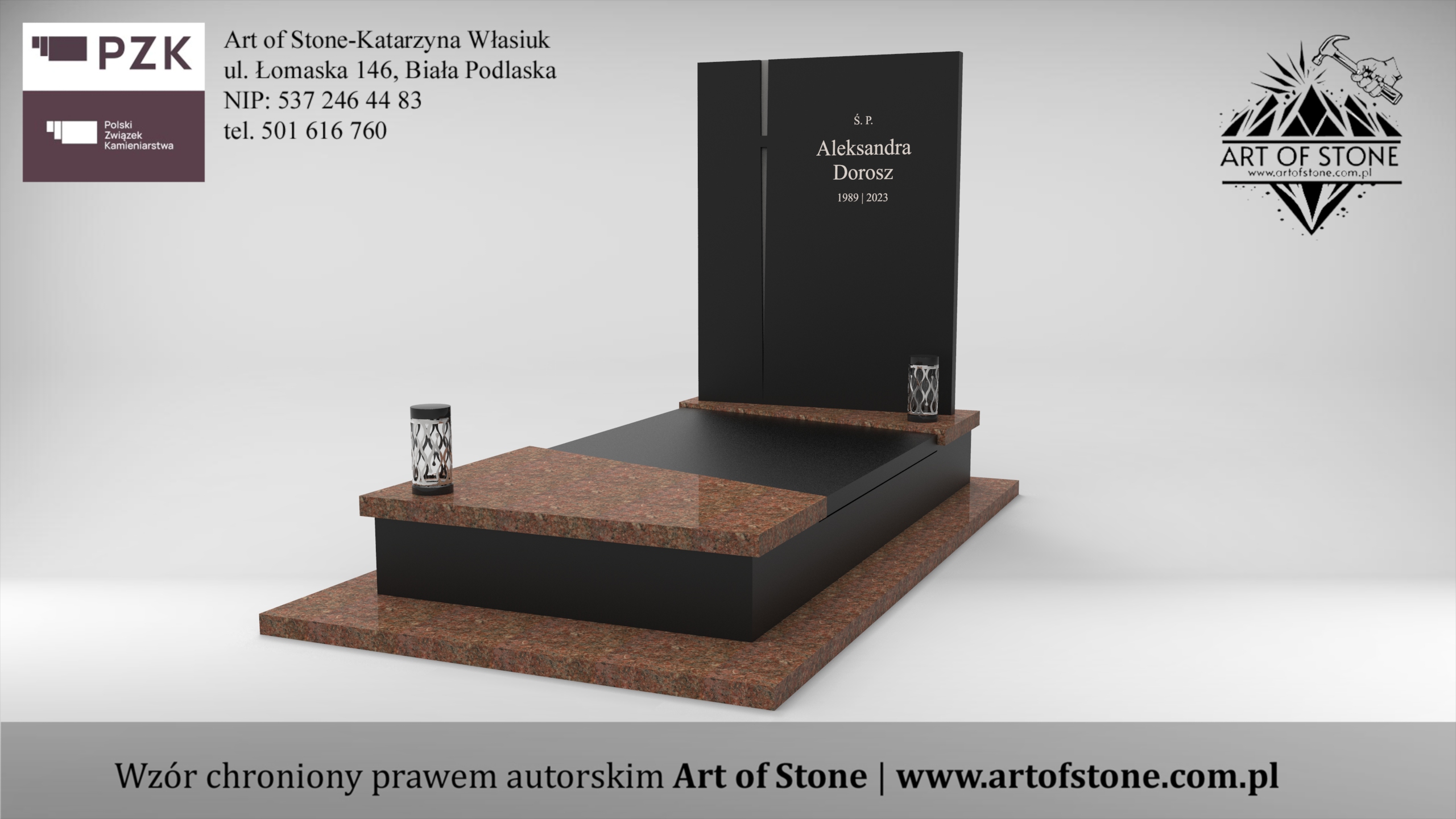 *Wzór chroniony prawem autorskim. Wykorzystanie grozi konsekwencjami prawnymi zarówno dla Zleceniodawcy, jak i Wykonawcy. Jeżeli chcesz zamówić taki nagrobek u lokalnego kamieniarza kup projekt z licencją na jednorazowe wykorzystanie.