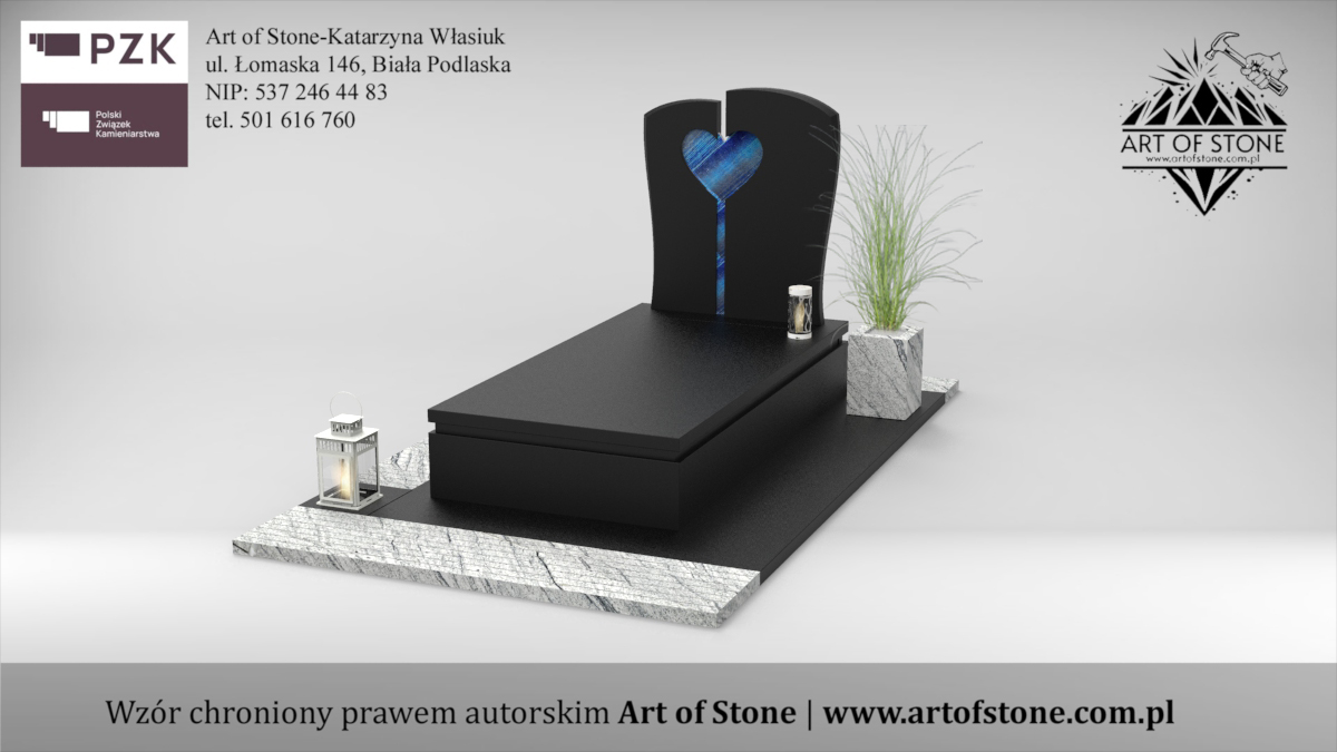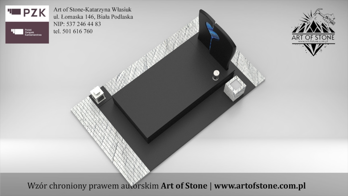 *Wzór chroniony prawem autorskim. Wykorzystanie grozi konsekwencjami prawnymi zarówno dla Zleceniodawcy, jak i Wykonawcy. Jeżeli chcesz zamówić taki nagrobek u lokalnego kamieniarza kup projekt z licencją na jednorazowe wykorzystanie.