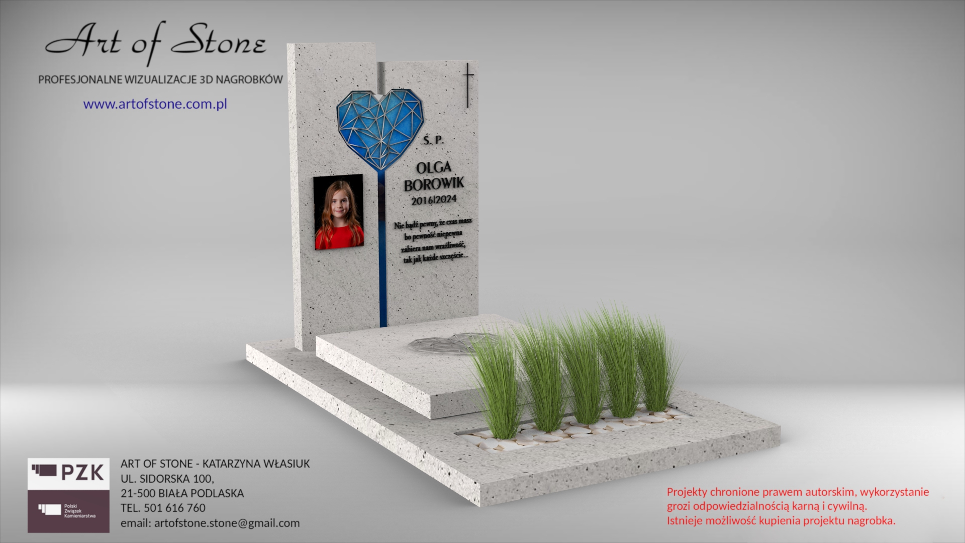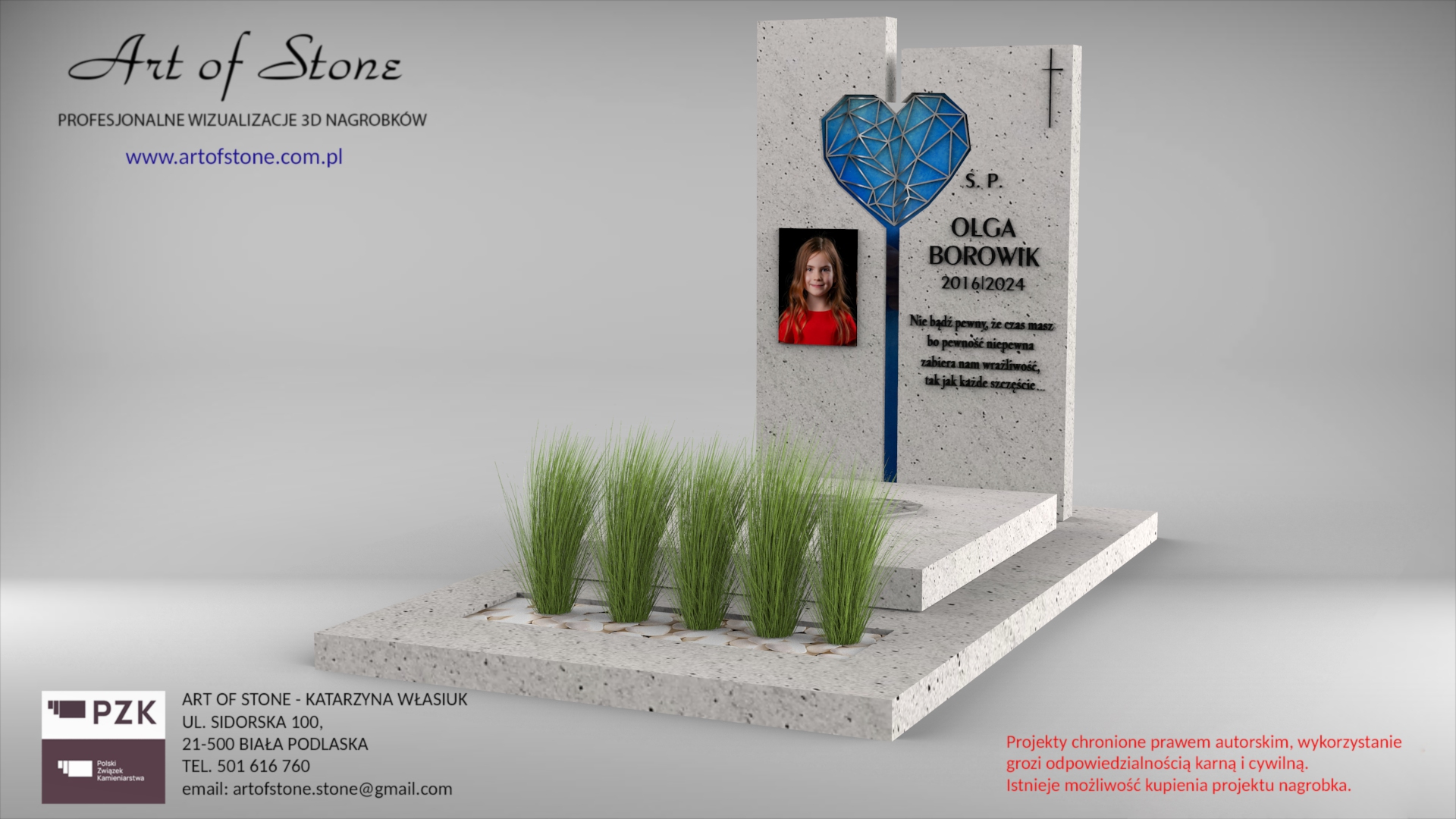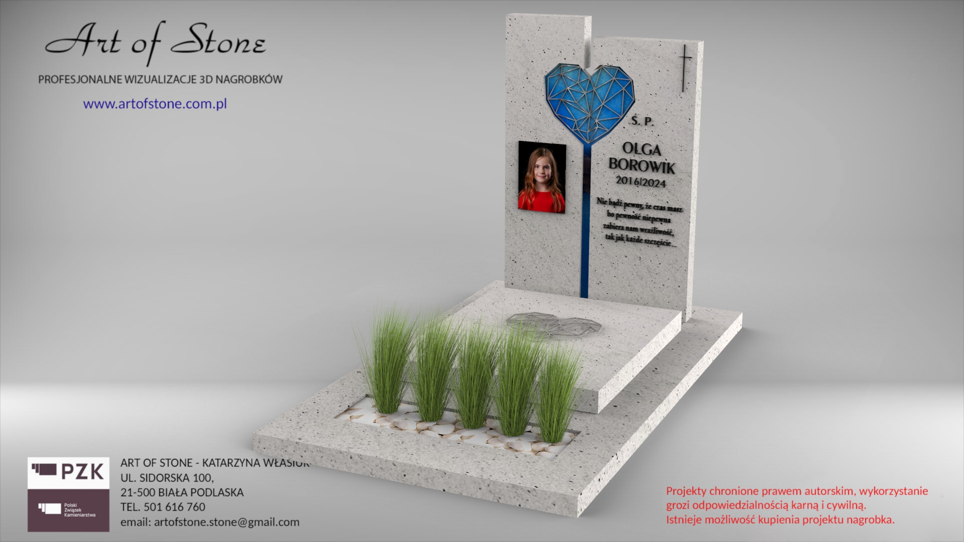 *Wzór chroniony prawem autorskim. Wykorzystanie grozi konsekwencjami prawnymi zarówno dla Zleceniodawcy, jak i Wykonawcy. Jeżeli chcesz zamówić taki nagrobek u lokalnego kamieniarza kup projekt z licencją na jednorazowe wykorzystanie.