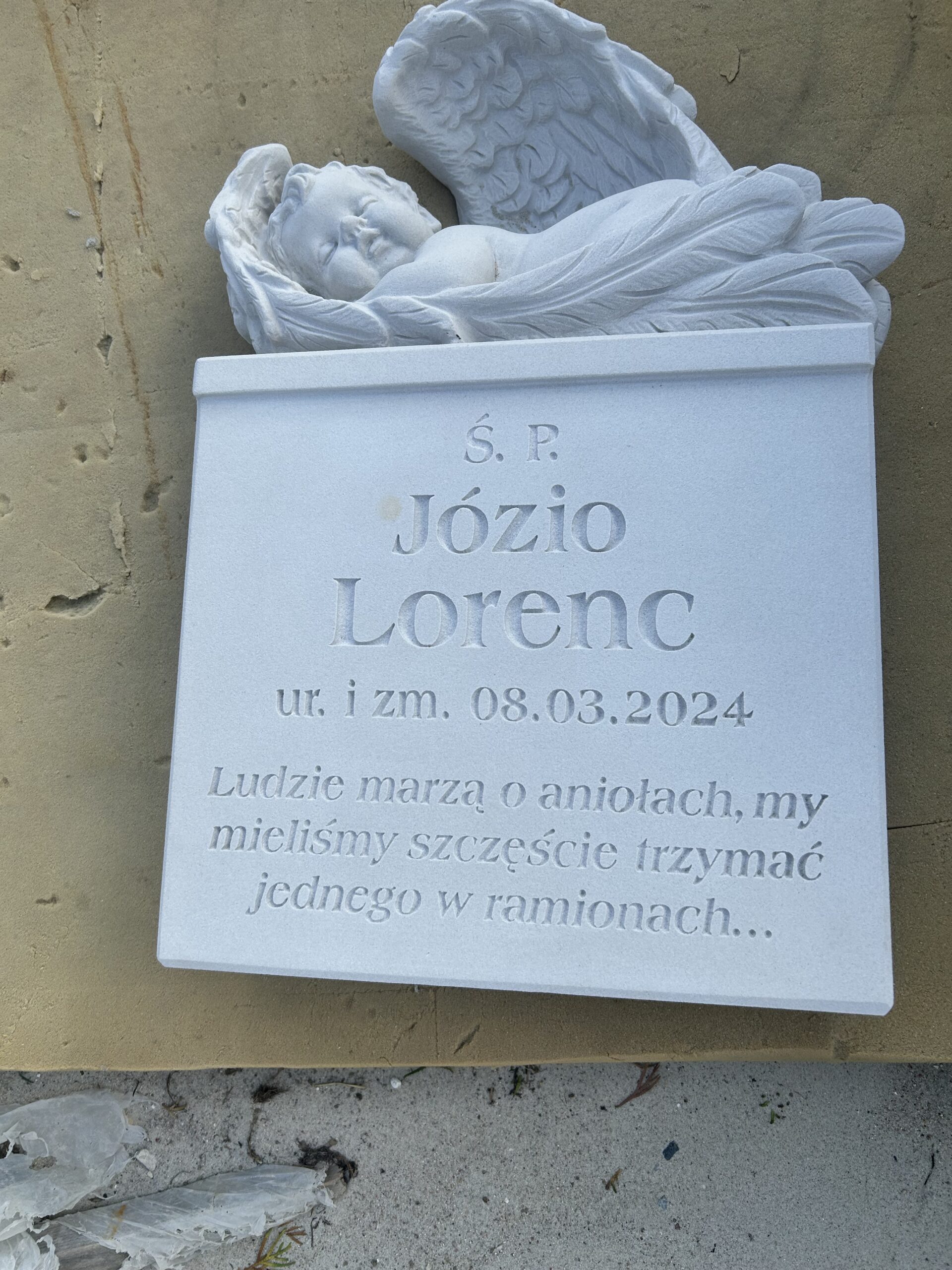 Istnieje możliwość transportu nagrobka dziecięcego w dowolne miejsce w Polsce bezpłatnie. Przygotowujemy wówczas pomnik tak, aby był łatwy w montażu. Dolne elementy złożone są na płycie z lastryko (gotowe do postawienia na cmentarzu), w tablicy napisowej wiercimy otwór montażowy. Służymy szczegółowymi instrukcjami montażu i wsparciem technicznym. Po zakupie wysyłamy projekt 3D ze spersonalizowanymi napisami do akceptacji. Możliwość dowolnych modyfikacji w projekcie, zmiana wymiaru może wiązać się z dodatkowymi kosztami. Zapraszamy do kontaktu telefonicznego w celu ustalenia szczegółów 501 616 760 (Katarzyna Własiuk).