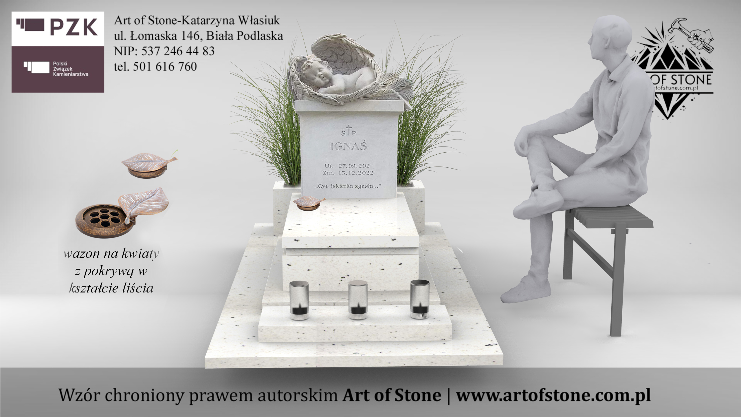 Nagrobek dziecięcy biały z rzeźbą na piwnicę grobową
