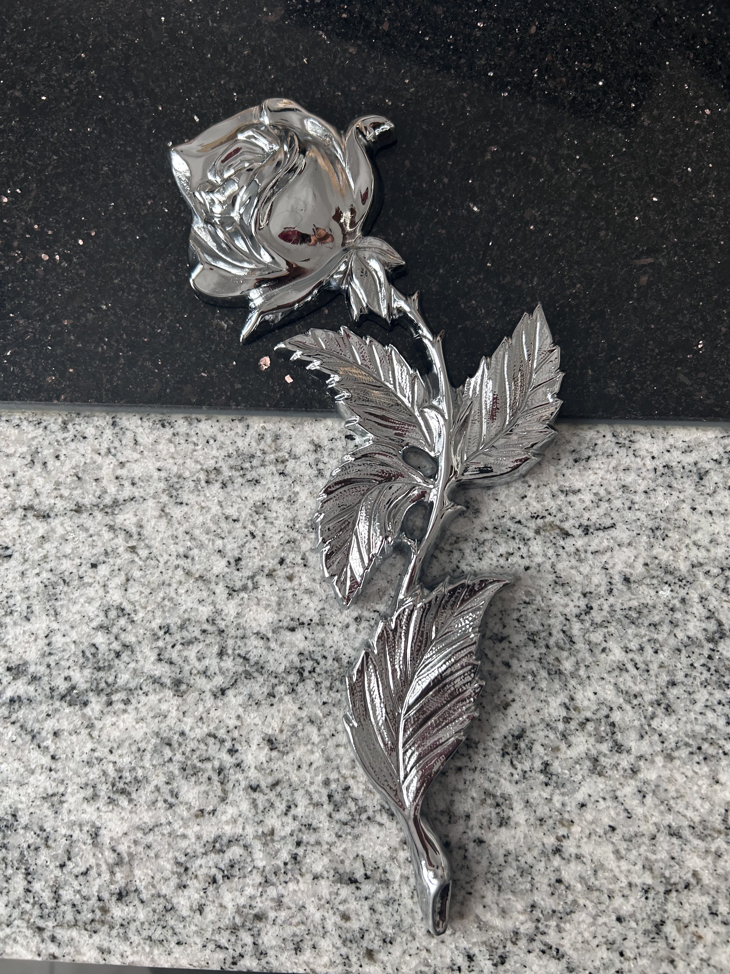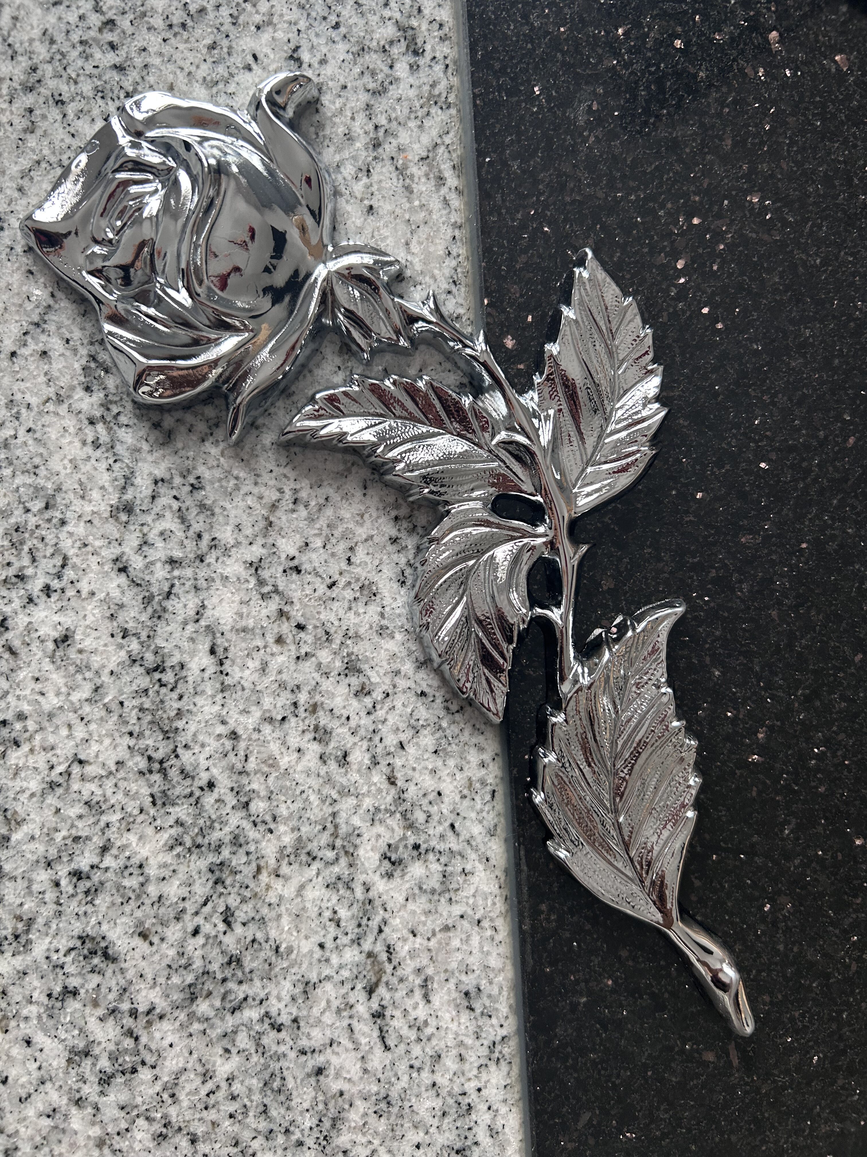 Piękna chromowana róża na nagrobek w kolorze srebrnym. Wymiar 30x13 cm.